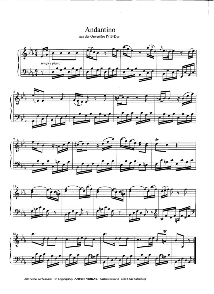 Originalkompositionen von Fischer, Kuhnau, J. S. Bach, J. Chr. Bach, Czerny, Schumann, Oesten, Gurlitt, Köhler, Schytte und Seifert.